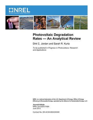 Photovoltaic Degradation Rates An Analytical Review Jordan 2013 Progress In Photovoltaics Research And Applications Wiley Online Library